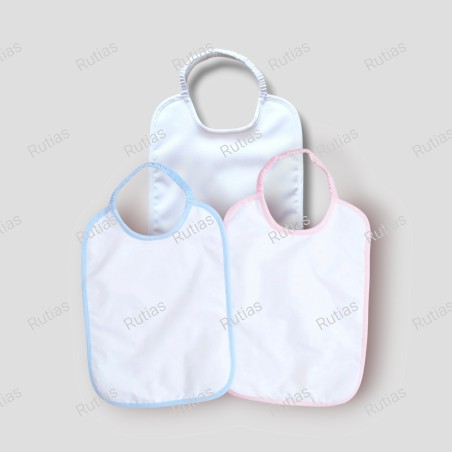 Bavaglino grande con elastico, fronte personalizzabile e retro in spugna assorbente, bianca con bordo colorato.